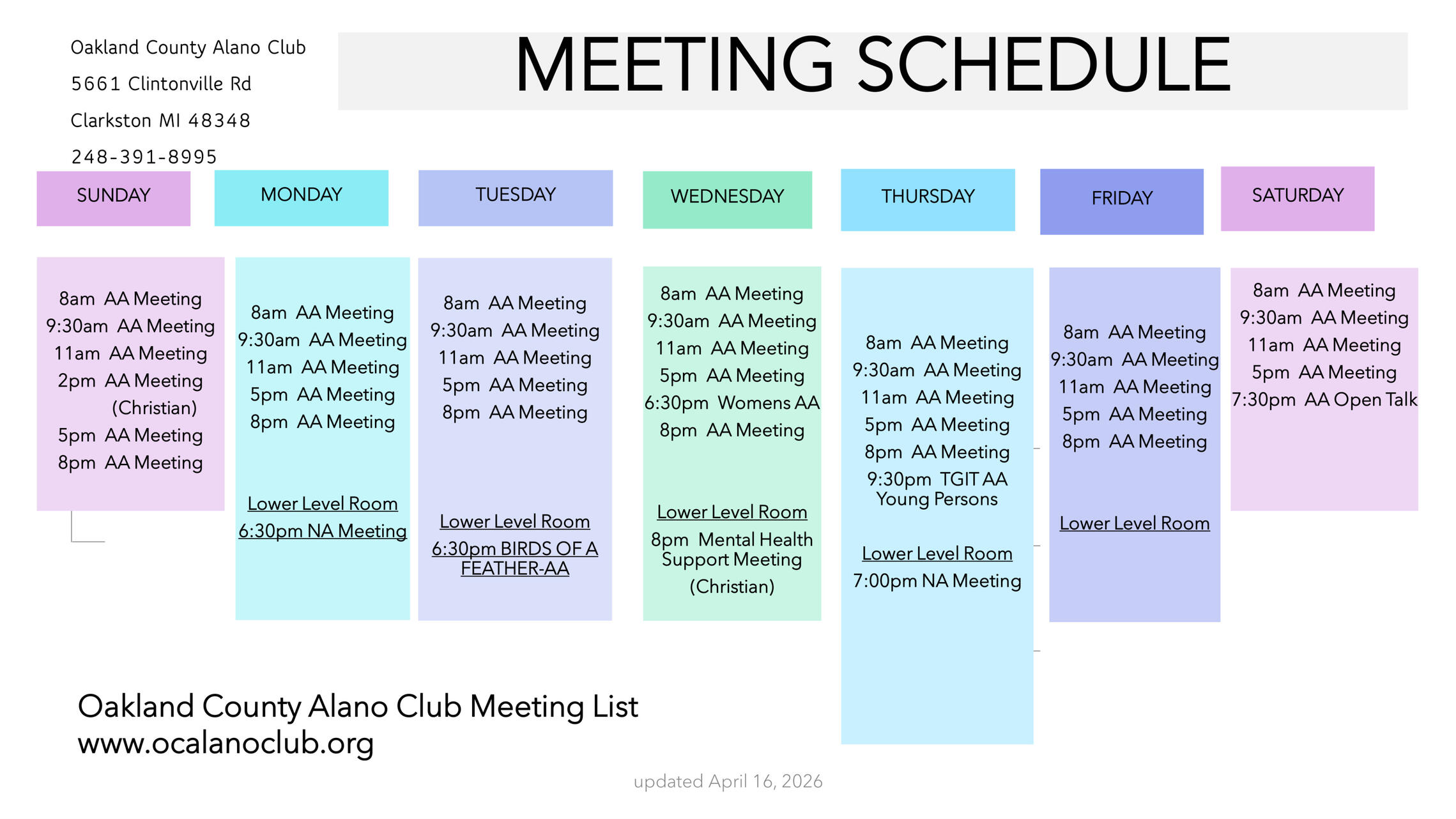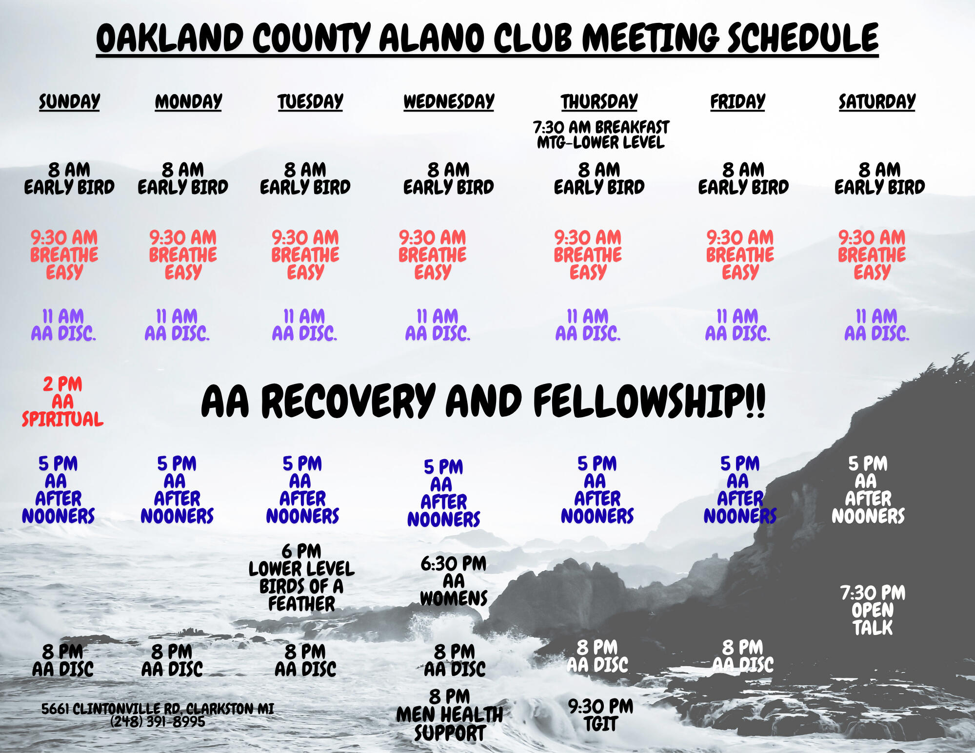 Become a MEMBER today!We offer you the opportunity to become a member of our club. Your membership enables us to keep our doors open for any individual seeking a safe, sober environment. We offer service to the AA community and house many meetings here. Membership is vital to our existence.Without a growing membership, our facility would cease to be. New members can breathe enthusiasm and life into our club. We welcome your ideas. Membership fees are very reasonable and can be paid by the year or by the month.Please help support the Oakland County Alano Club